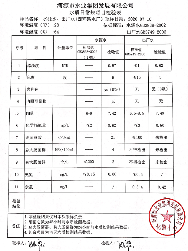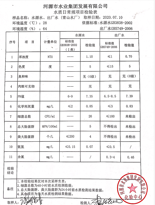 2020年7月10日水質檢驗報告