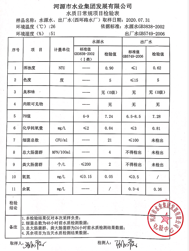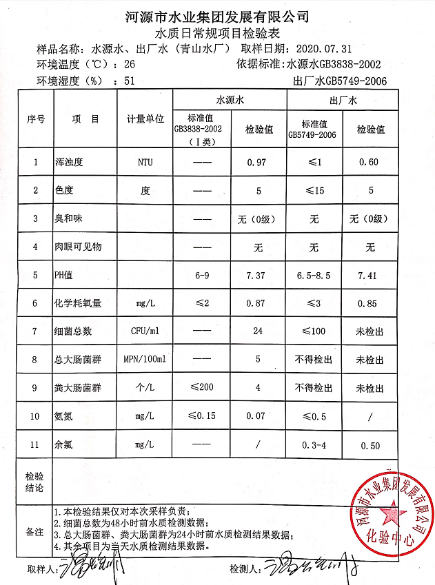 2020年7月31日水質檢驗報告