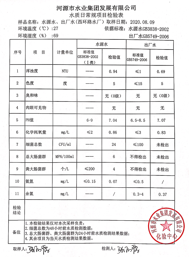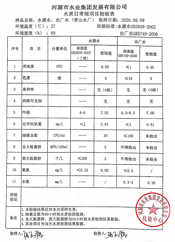 2020年8月9日水質檢驗報告