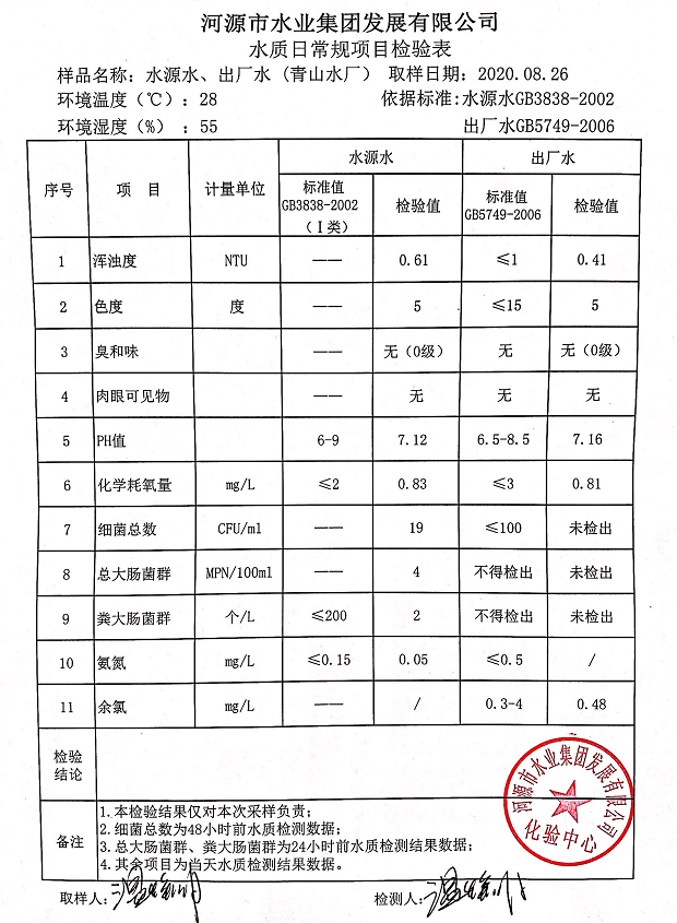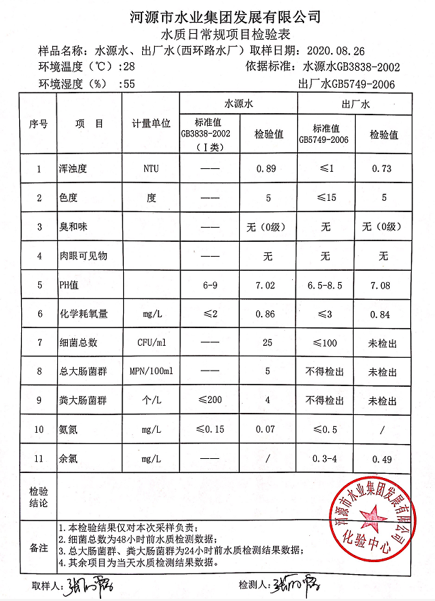 2020年8月26日水質檢驗報告