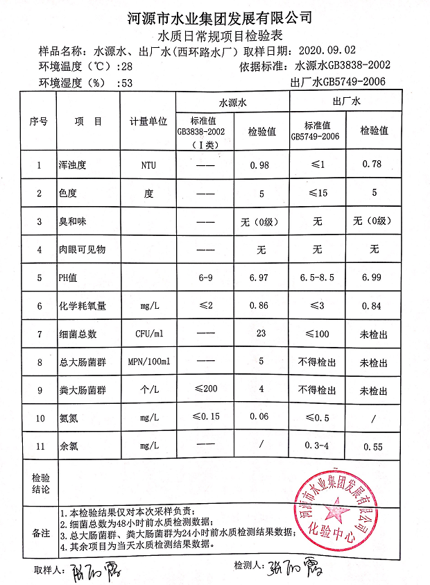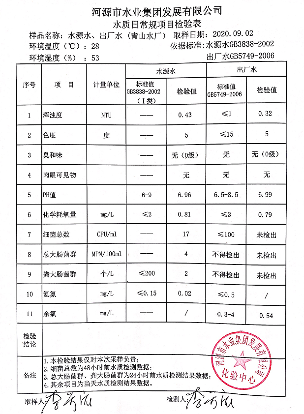 2020年9月2日水質檢驗報告