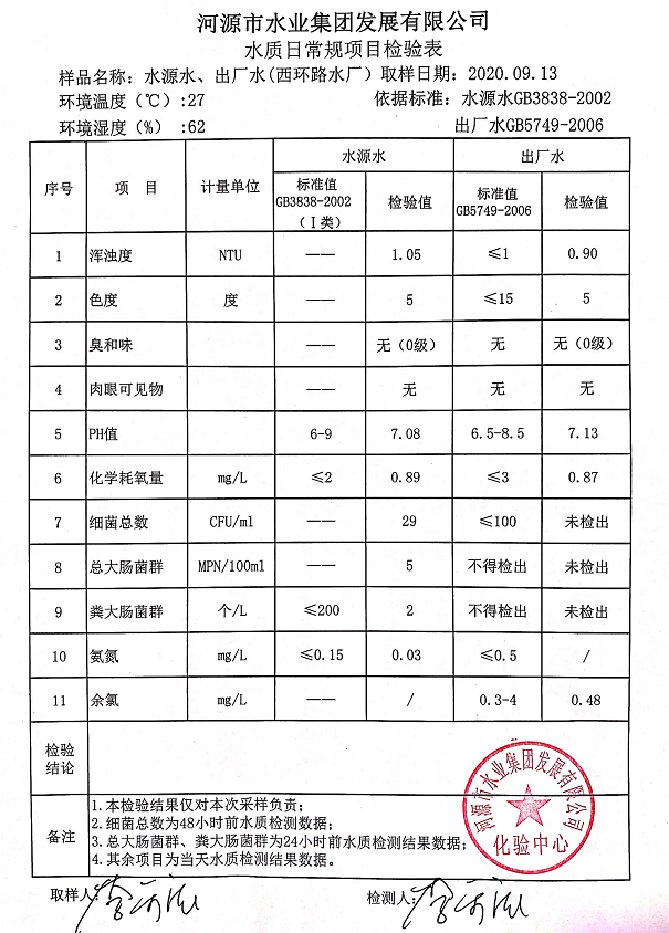 2020年9月13日水質(zhì)檢驗(yàn)報(bào)告