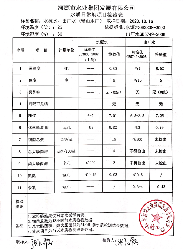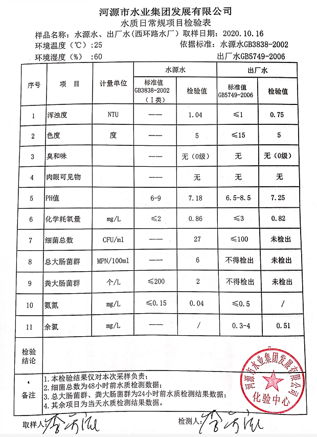 2020年10月16日水質(zhì)檢驗(yàn)報(bào)告