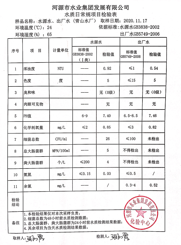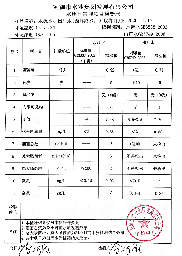 2020年11月17日水質檢驗報告