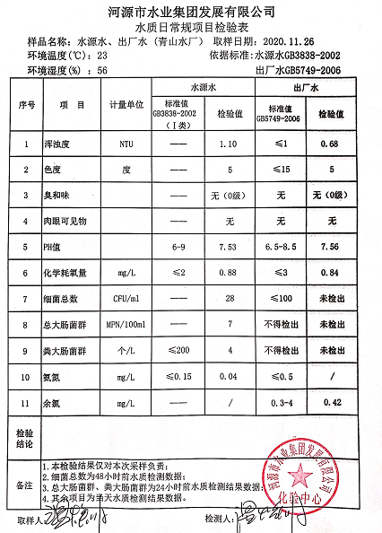 2020年11月26日水質(zhì)檢驗報告