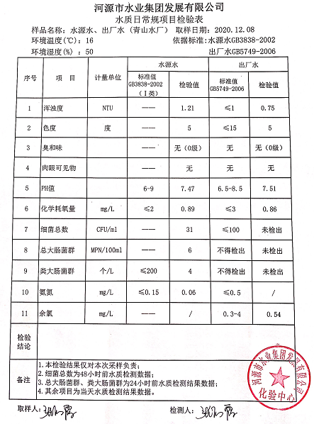 2020年12月8日水質檢驗報告