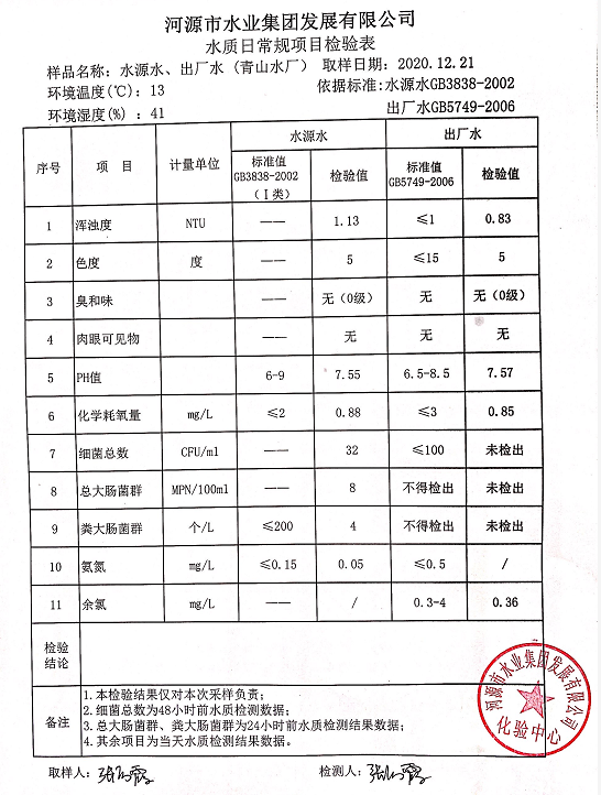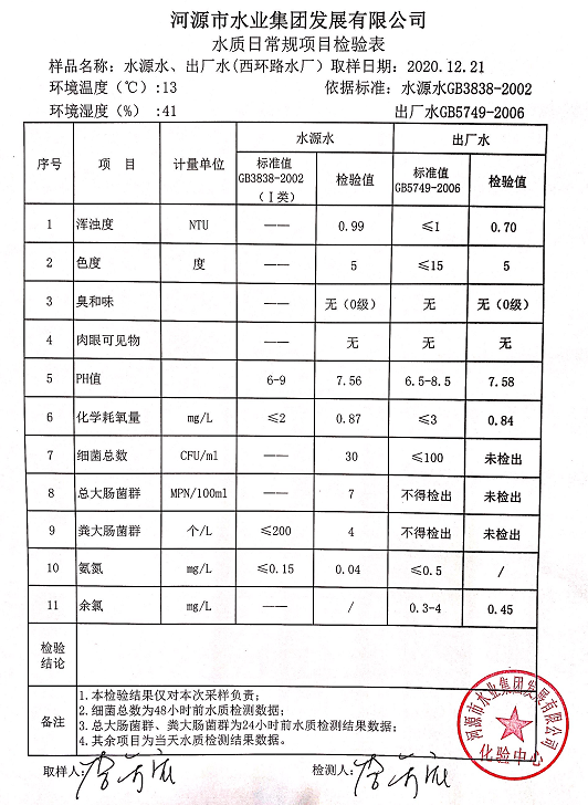 2020年12月21日水質檢驗報告
