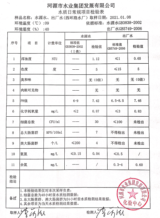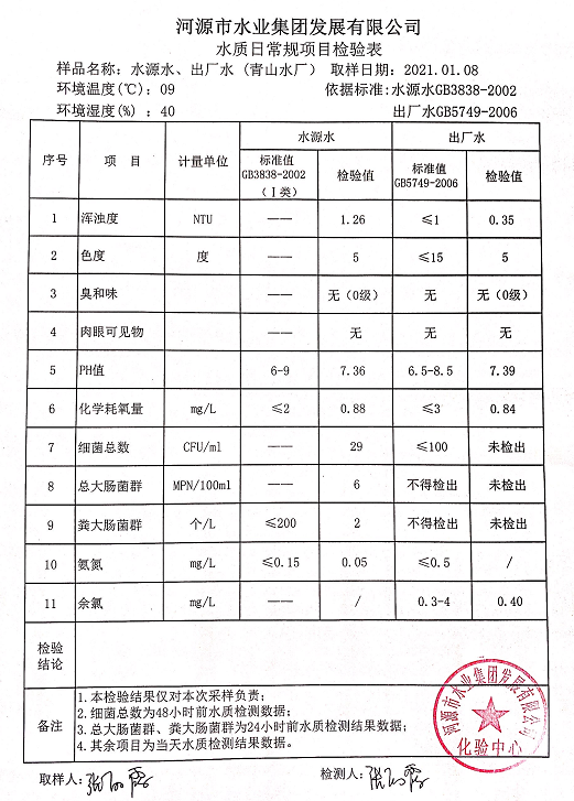 2021年1月8日水質檢驗報告