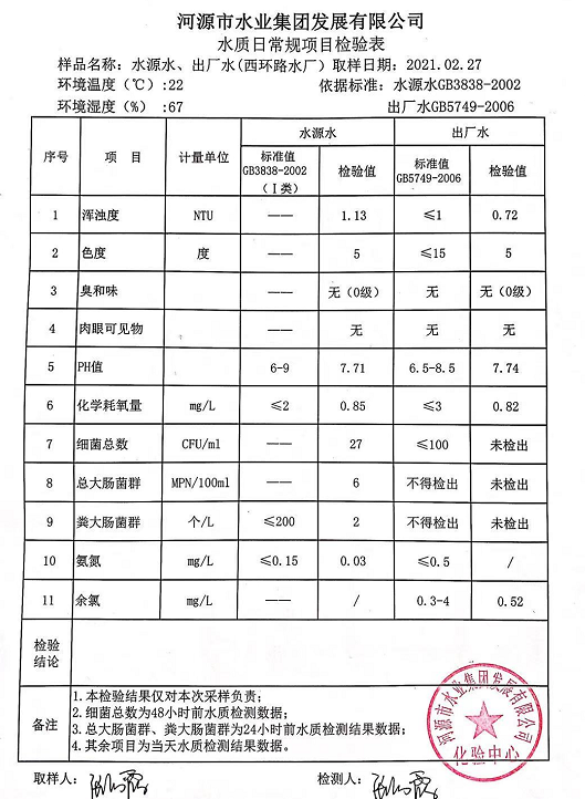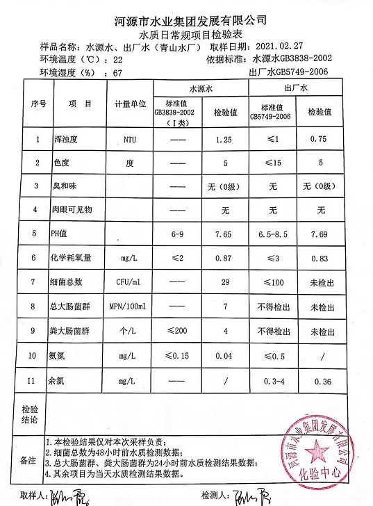 2021年2月27日水質檢驗報告