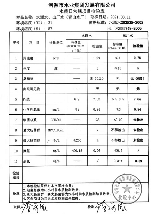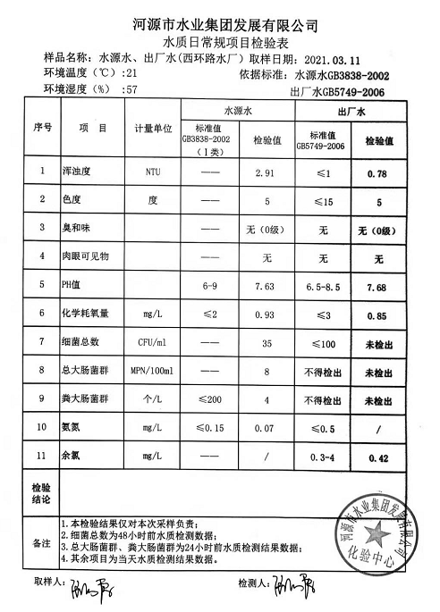 2021年3月11日水質檢驗報告