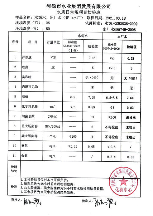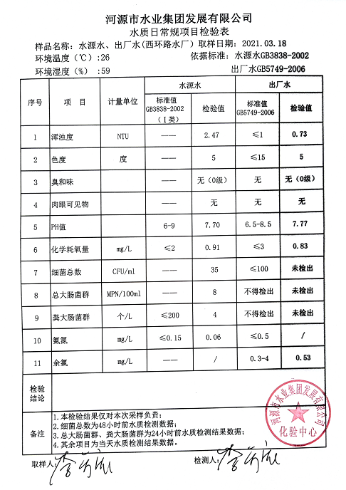 2021年3月18日水質(zhì)檢驗(yàn)報(bào)告