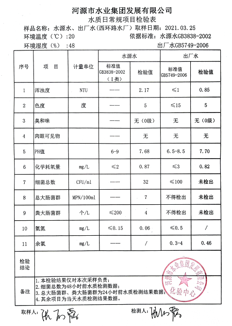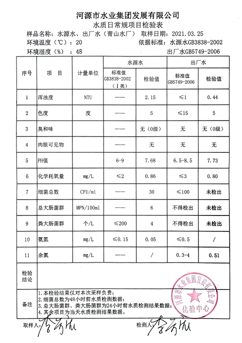 2021年3月25日水質(zhì)檢驗(yàn)報(bào)告
