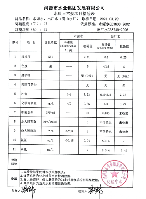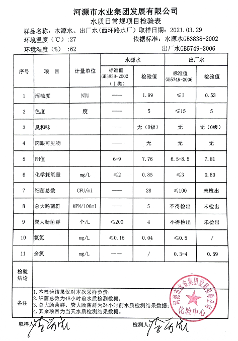 2021年3月29日水質檢驗報告
