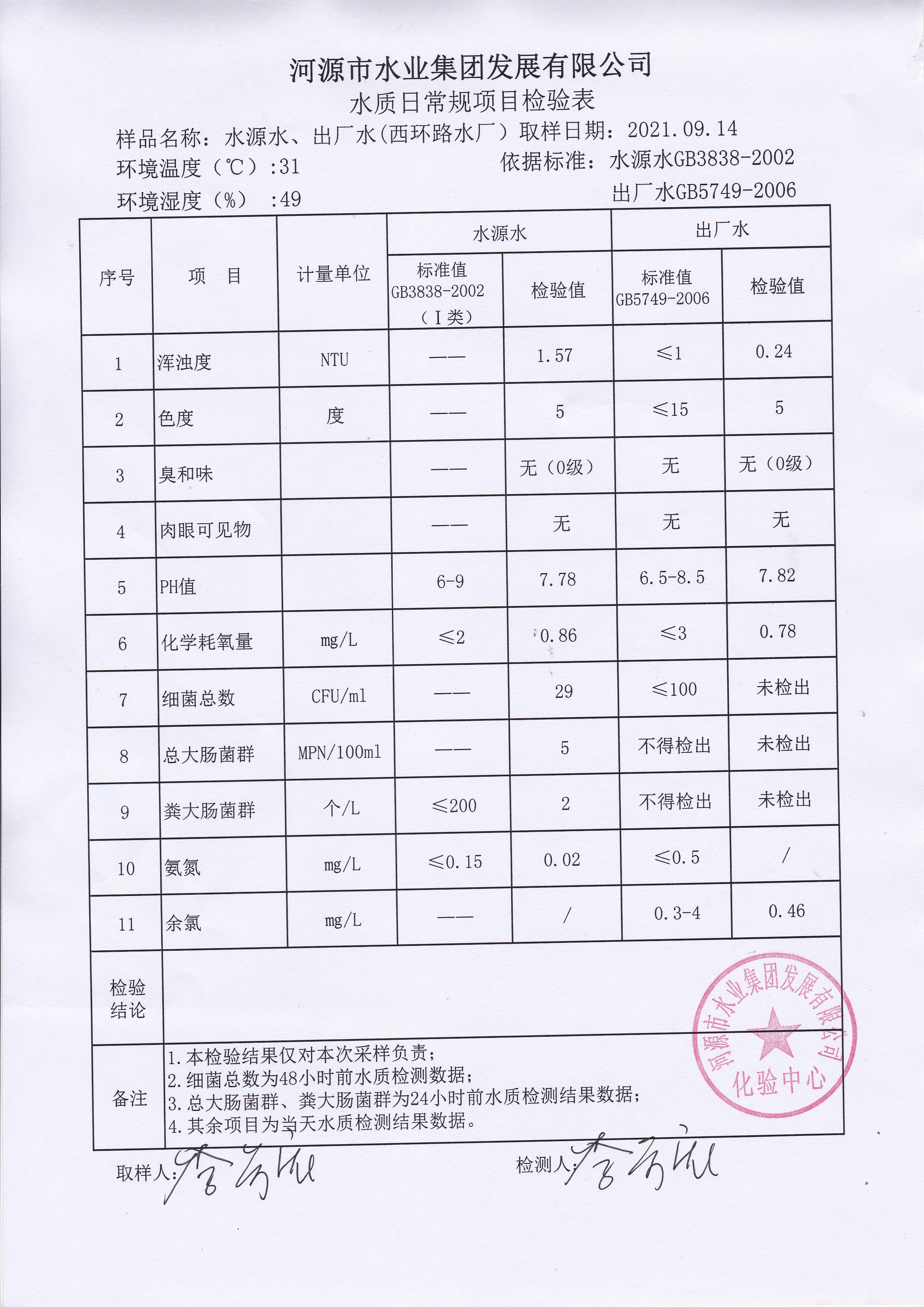 2021年9月14日水質(zhì)檢驗(yàn)報(bào)告 ??