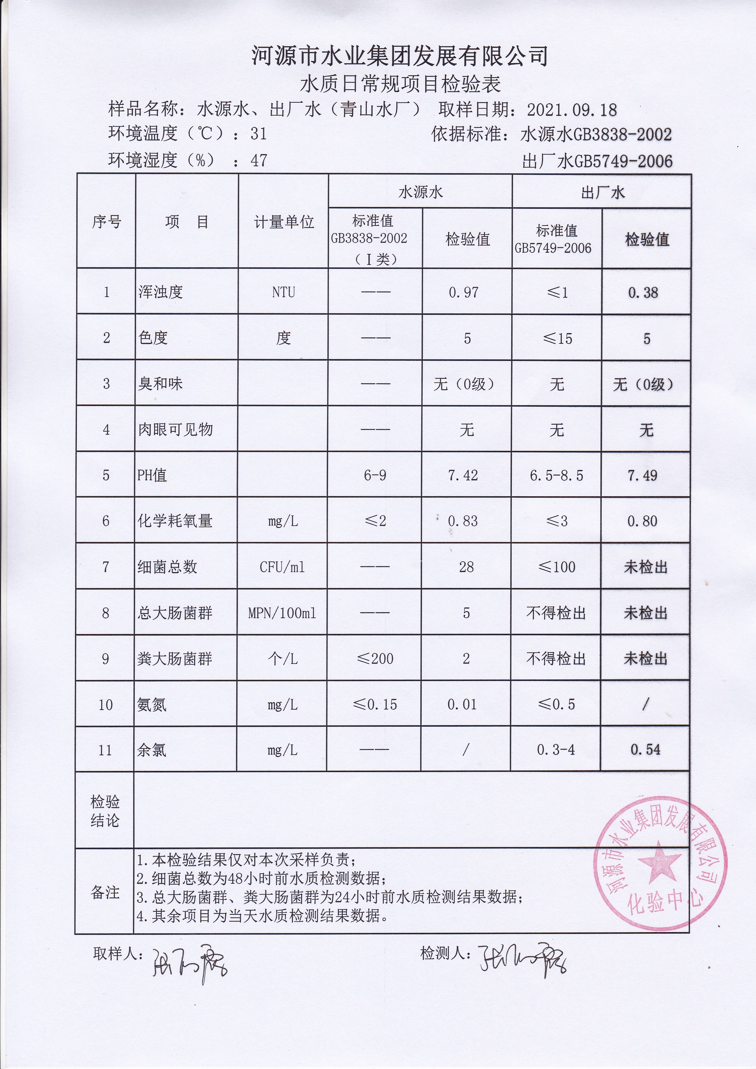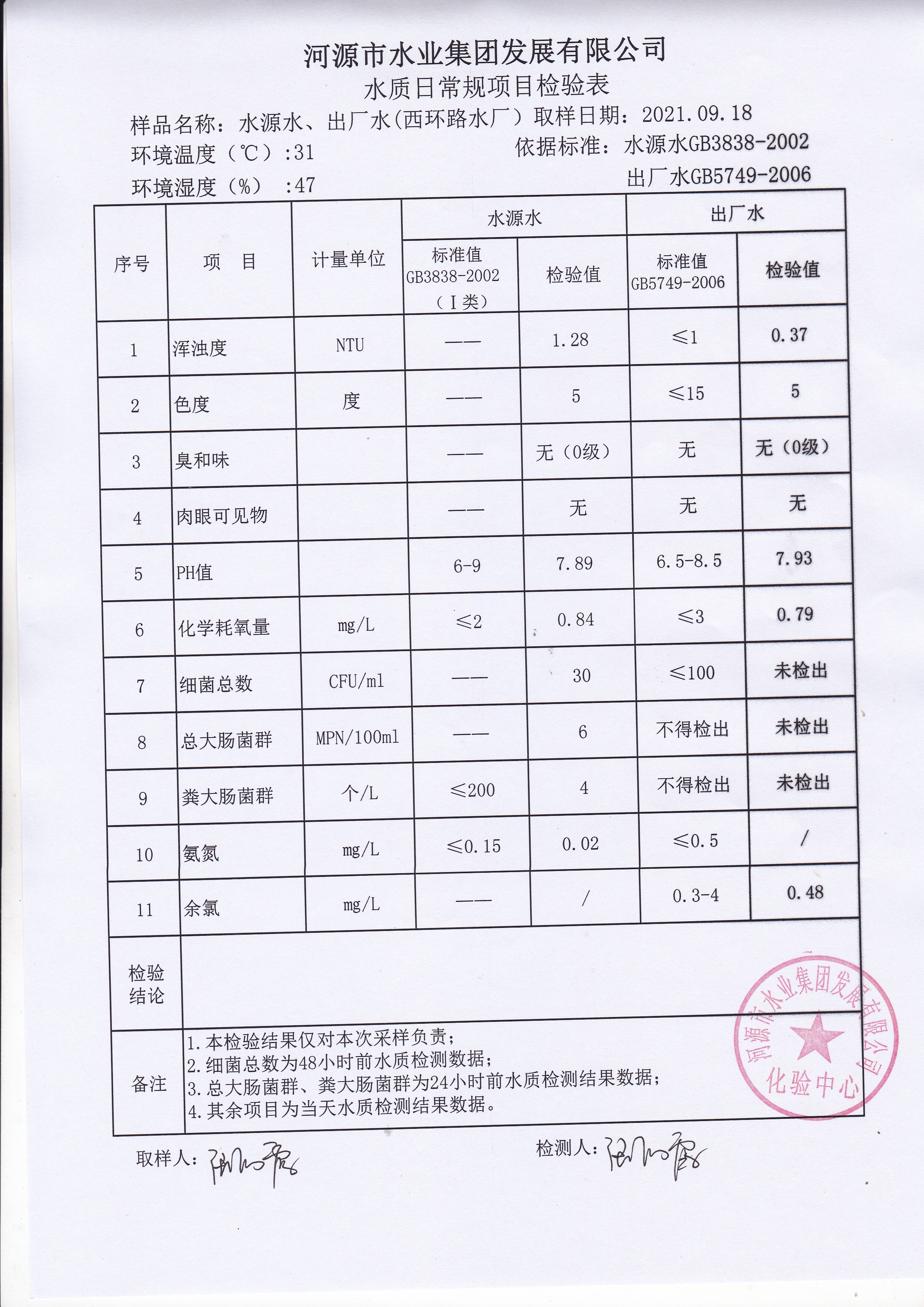 2021年9月1日水質檢驗報告 ??