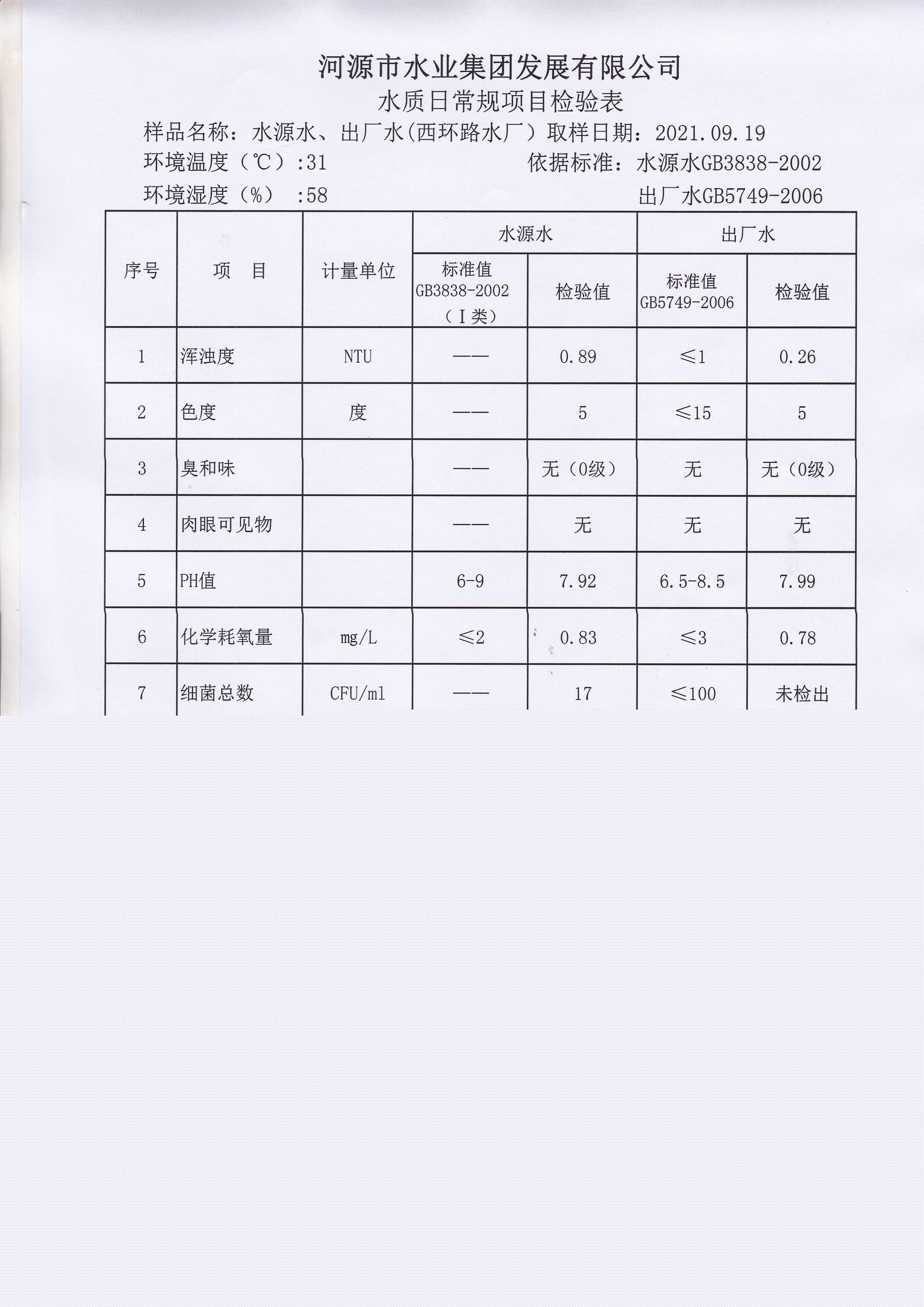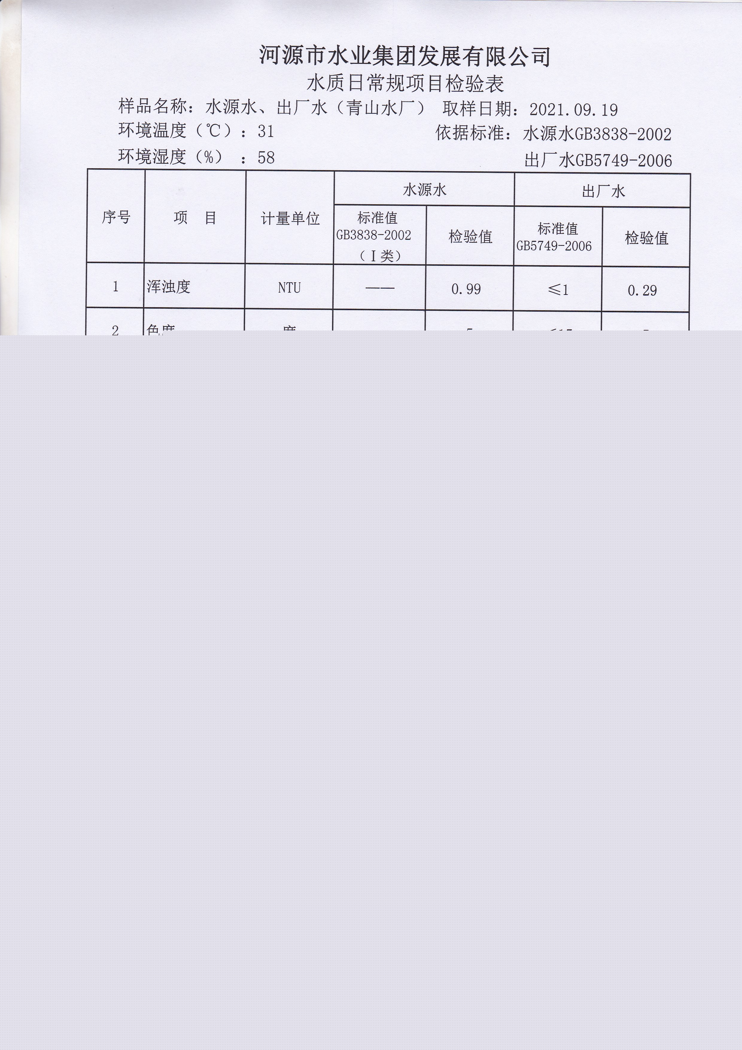 2021年9月19日水質檢驗報告 ?