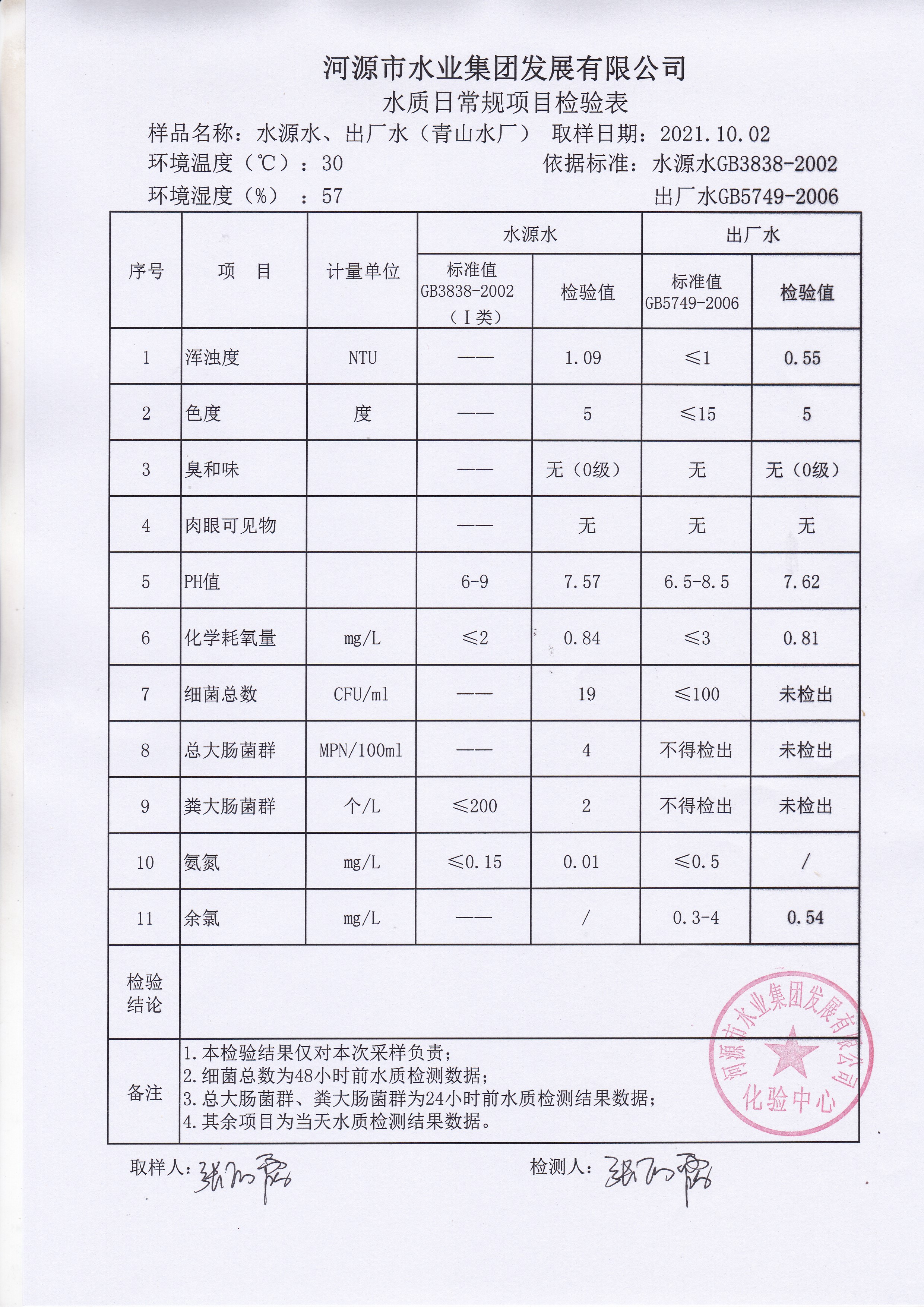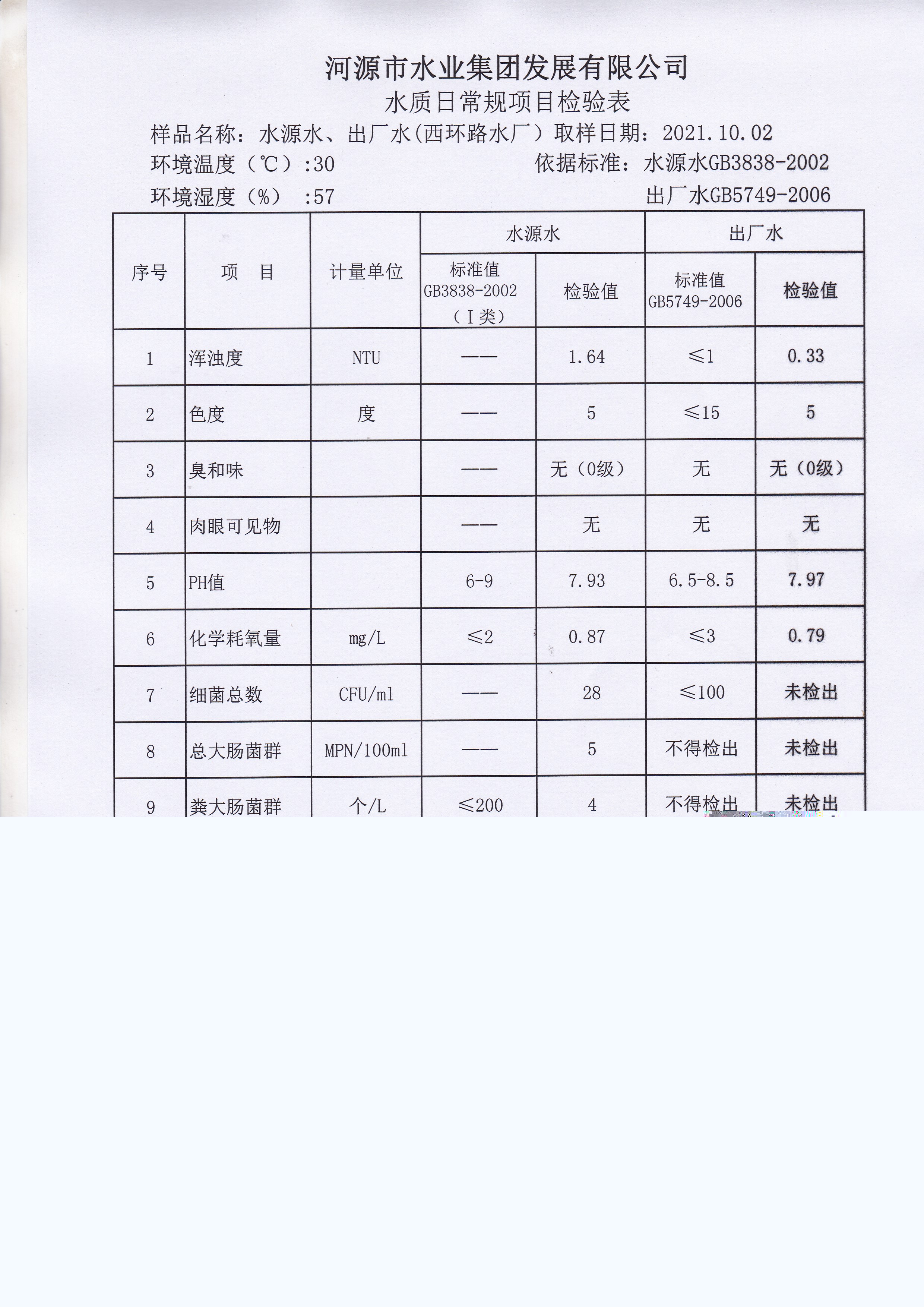2021年10月2日水質檢驗報告