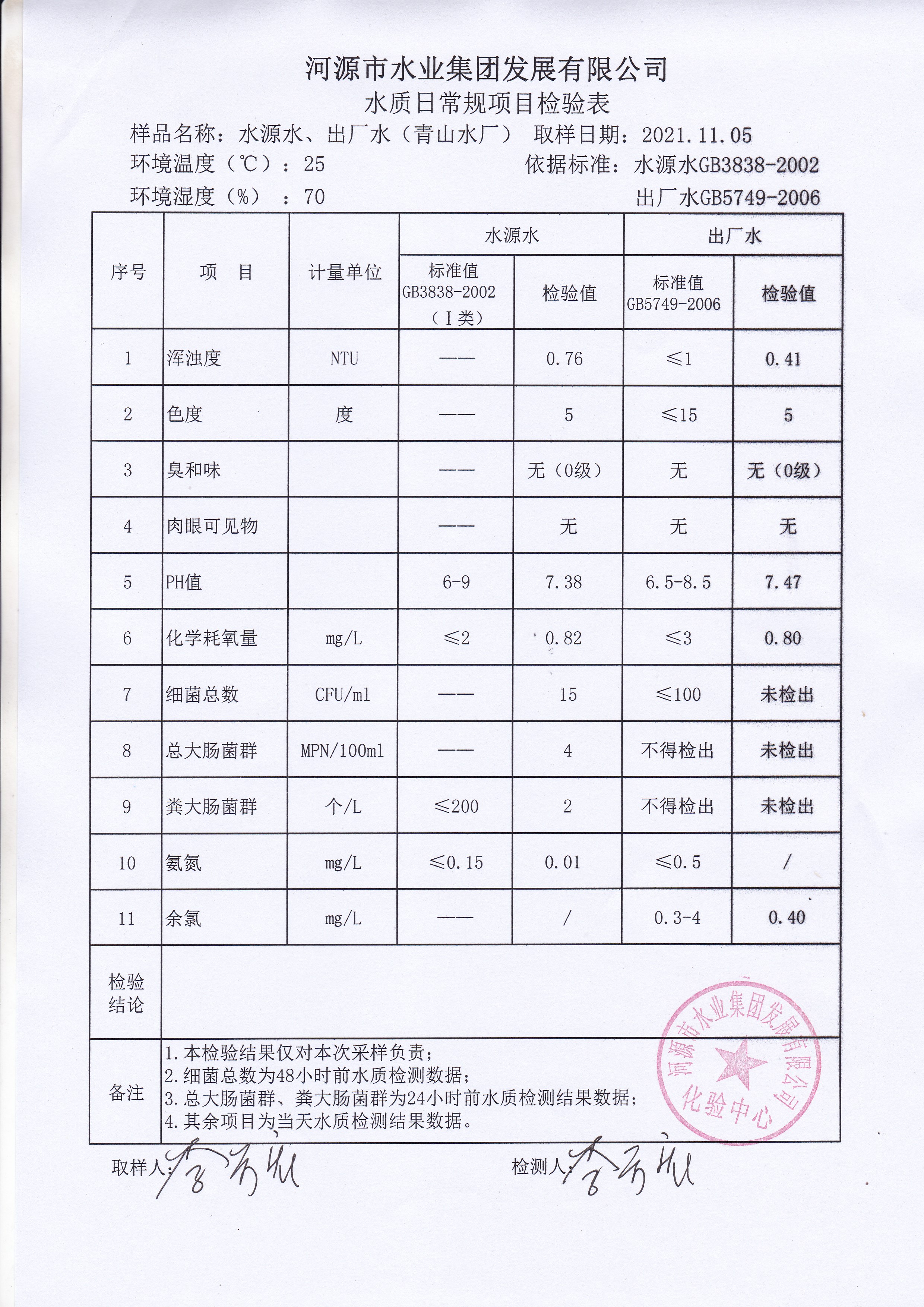 2021年11月5日水質檢驗報告
