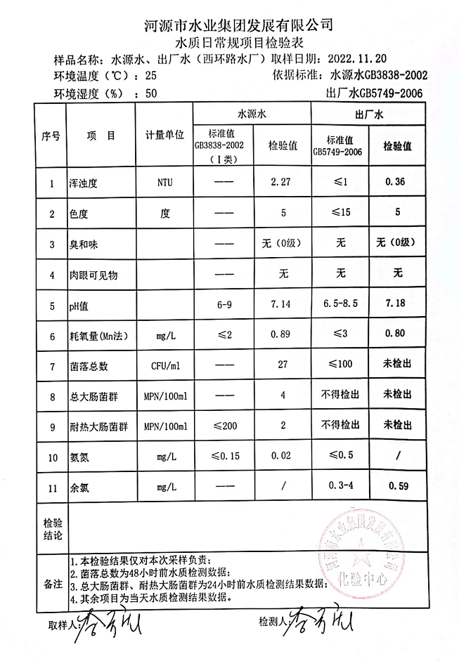 2022年11月20日水質檢驗報告