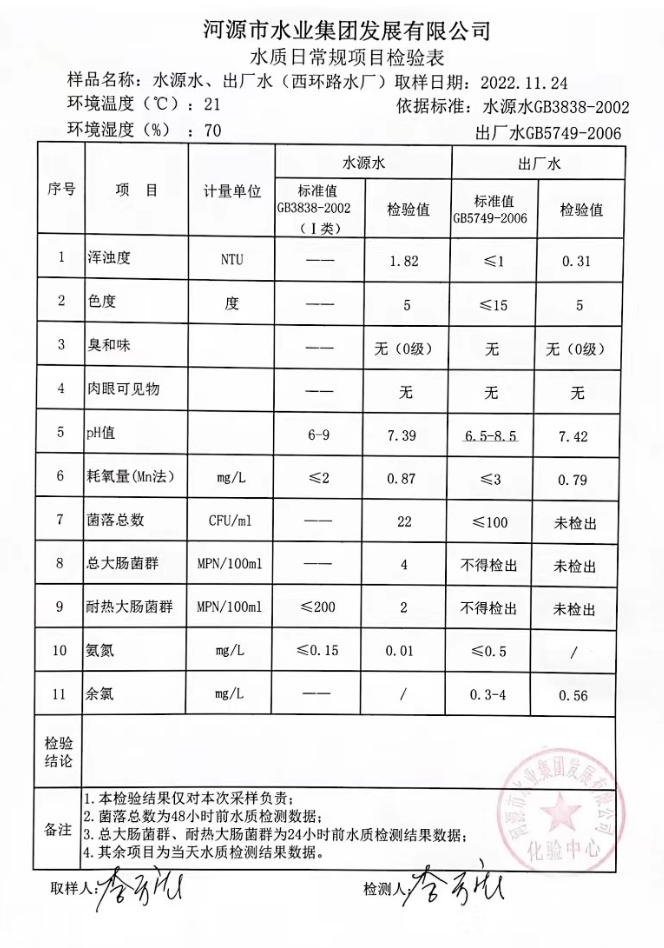 2022年11月24日水質(zhì)檢驗(yàn)報(bào)告