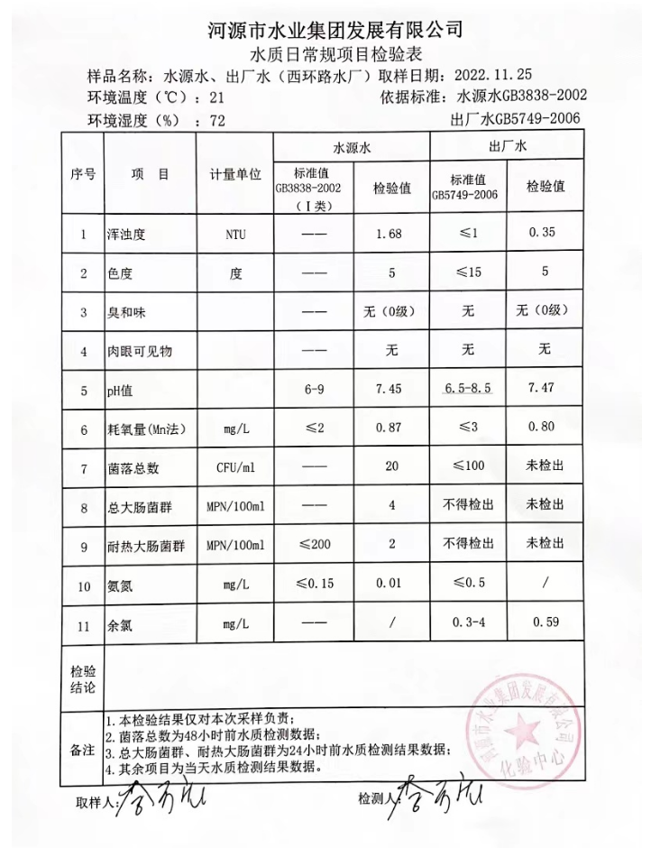 2022年11月25日水質(zhì)檢驗(yàn)報(bào)告