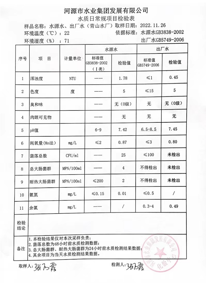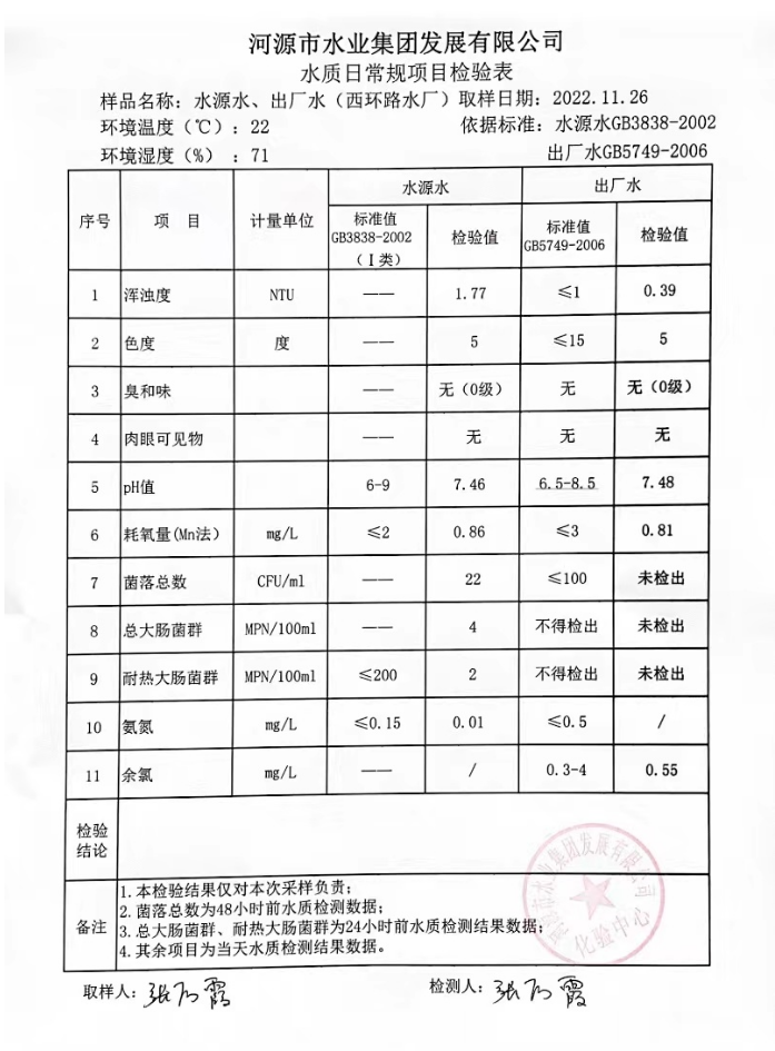 2022年11月26日水質檢驗報告