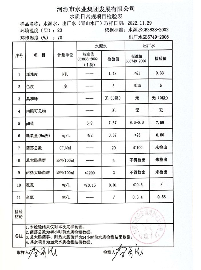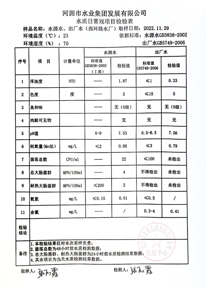 2022年11月29日水質檢驗報告