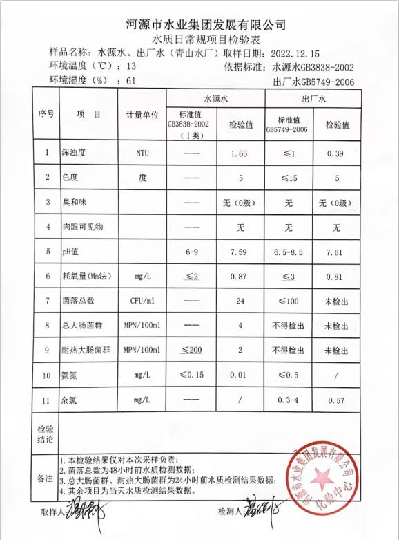 2022年12月16日水質檢驗報告
