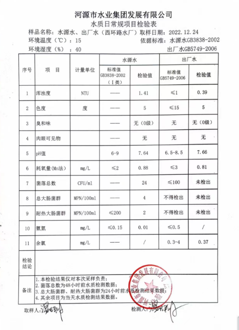 2022年12月24日水質(zhì)檢驗(yàn)報(bào)告