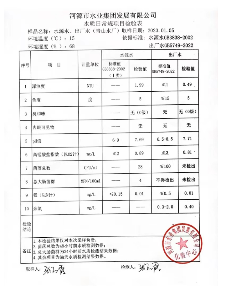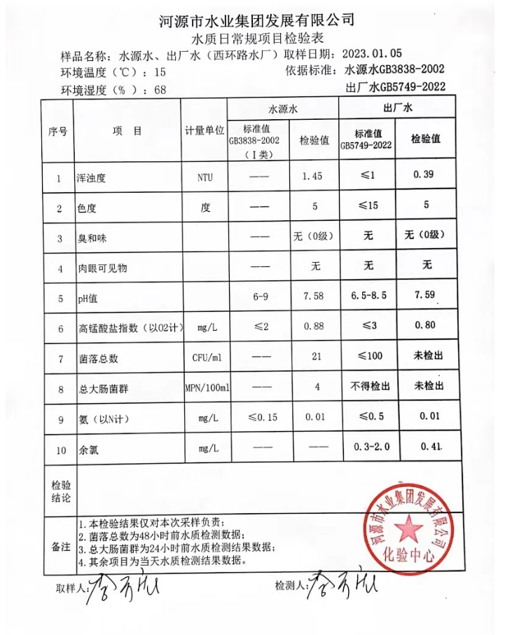 2023年1月5日水質檢驗報告