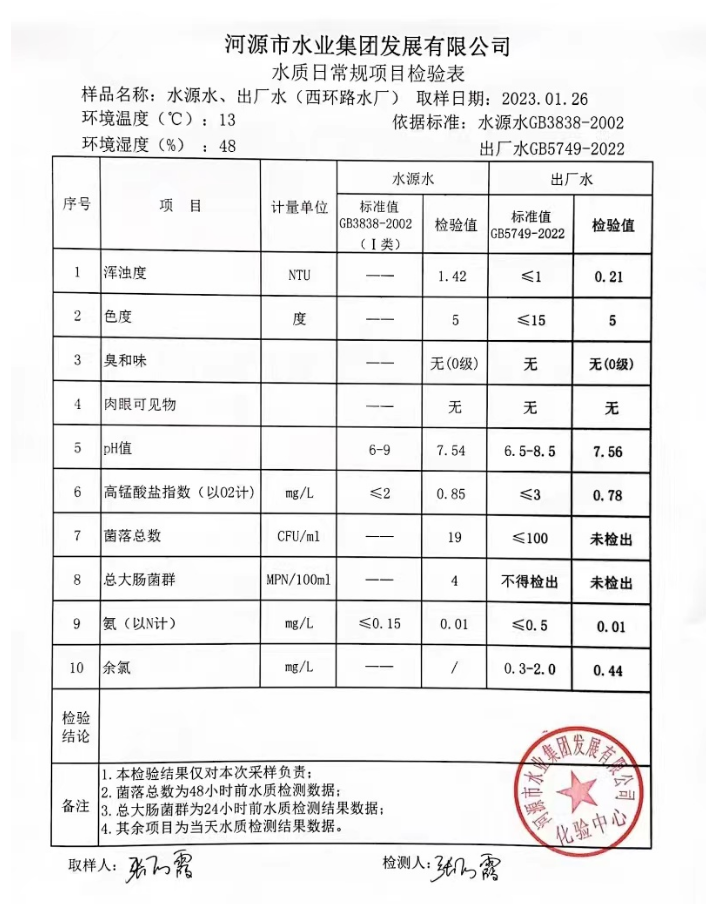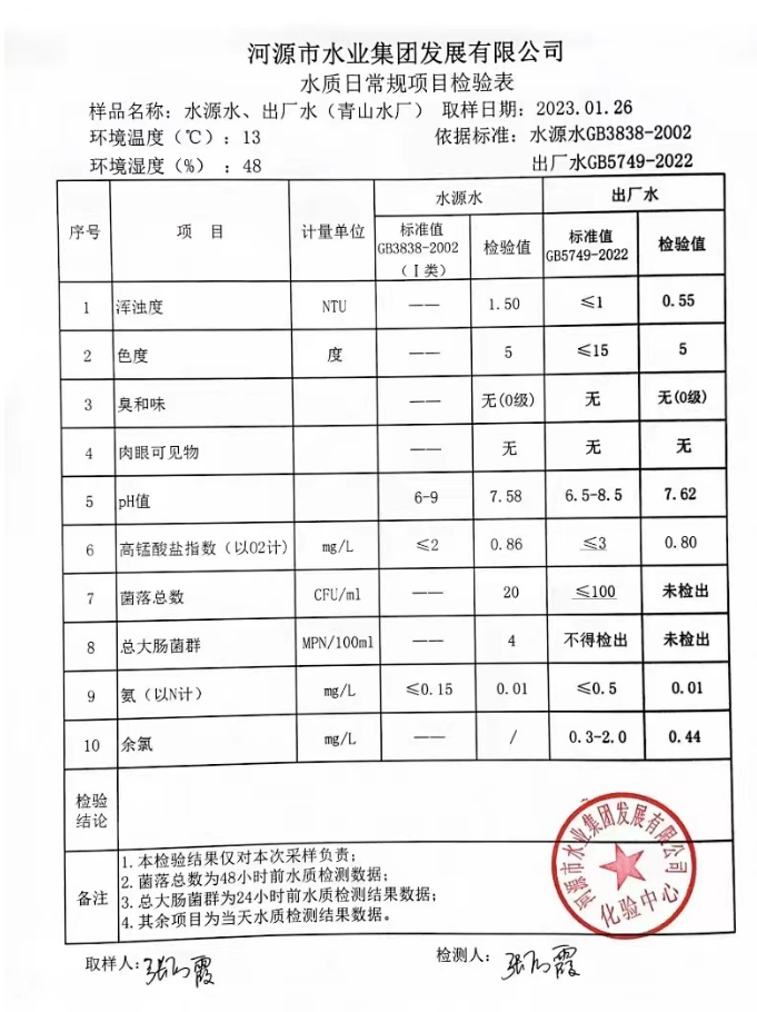 2023年1月26日水質(zhì)檢驗(yàn)報(bào)告
