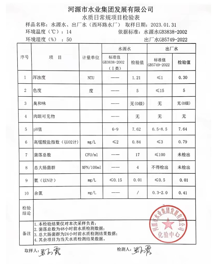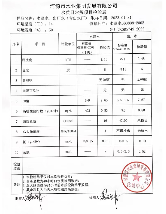 2023年1月31日水質檢驗報告