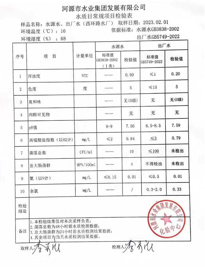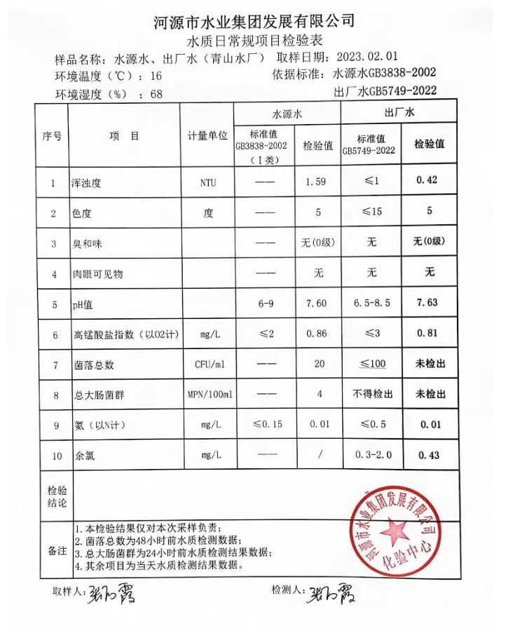 2023年2月1日水質(zhì)檢驗(yàn)報(bào)告