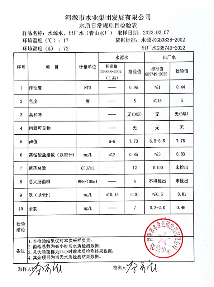 2023年2月7日水質檢驗報告