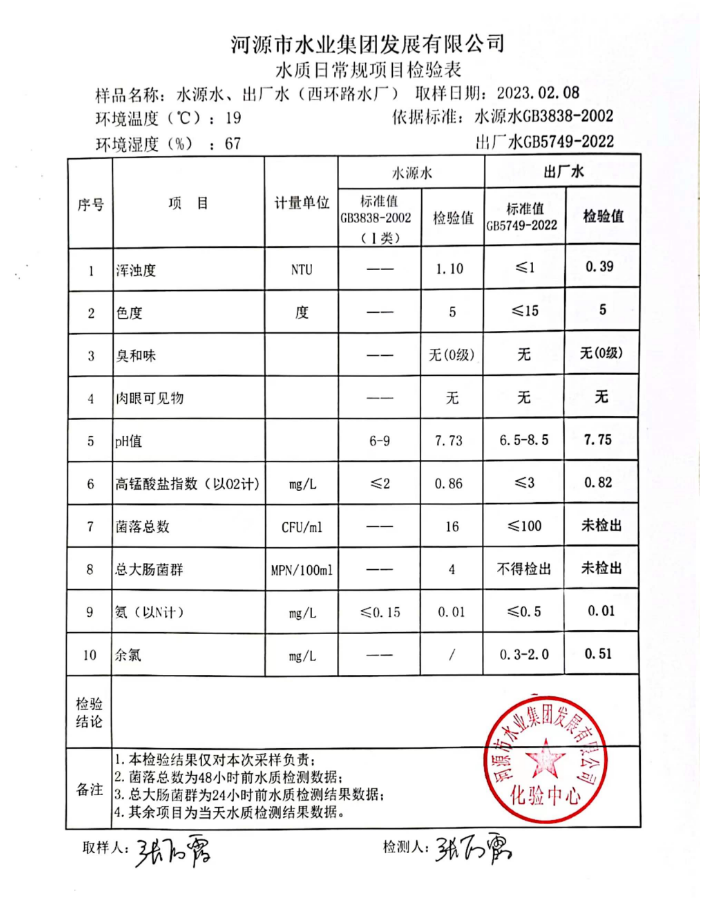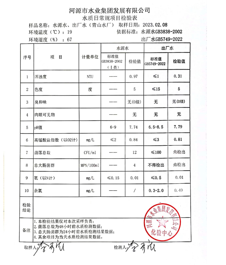 2023年2月8日水質(zhì)檢驗(yàn)報(bào)告