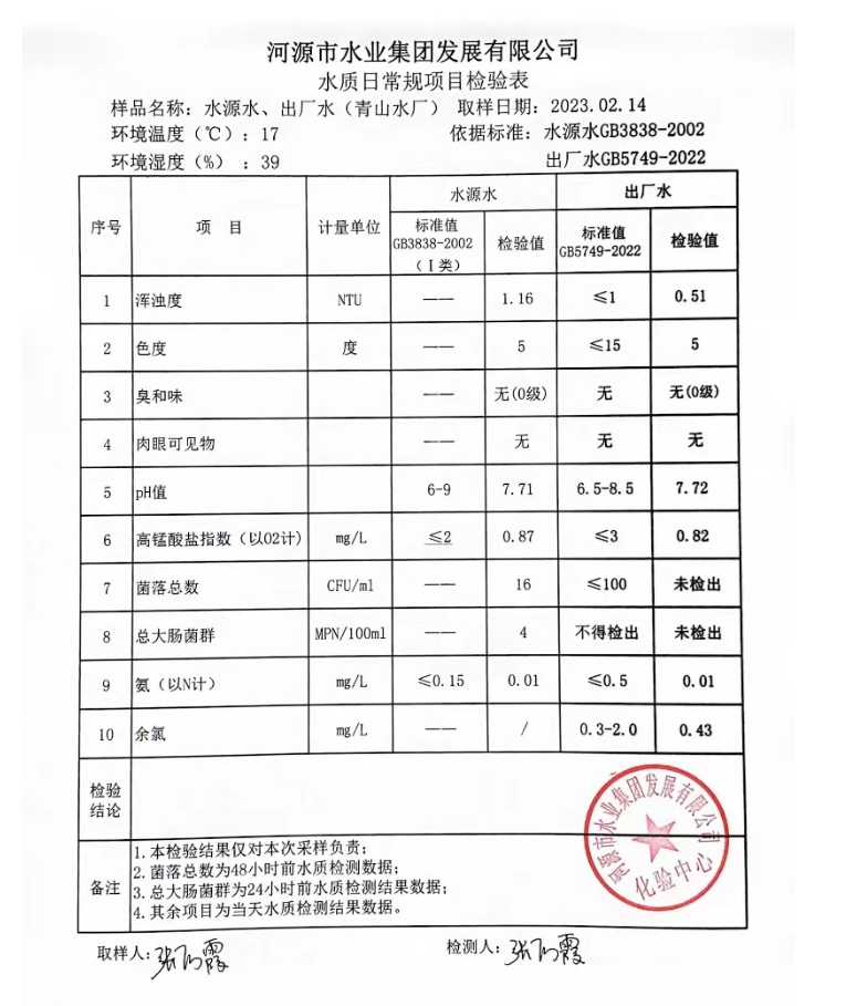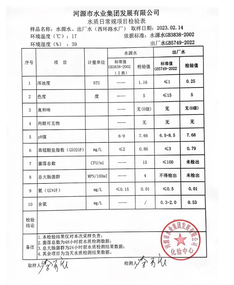2023年2月14日水質(zhì)檢驗(yàn)報(bào)告