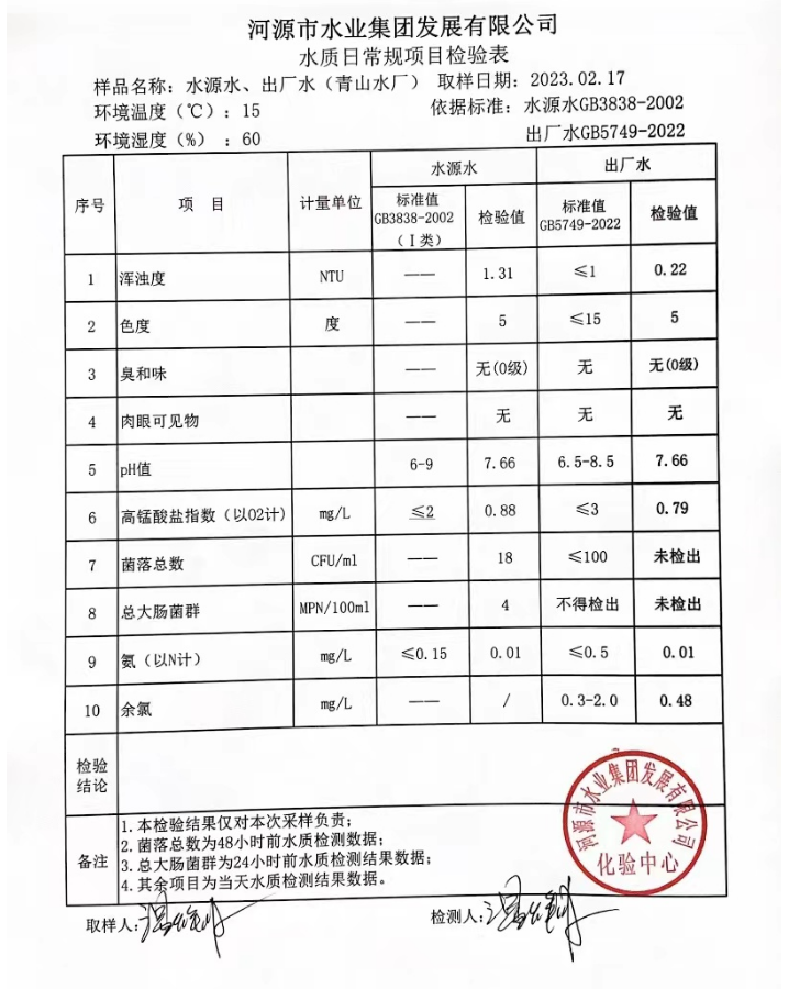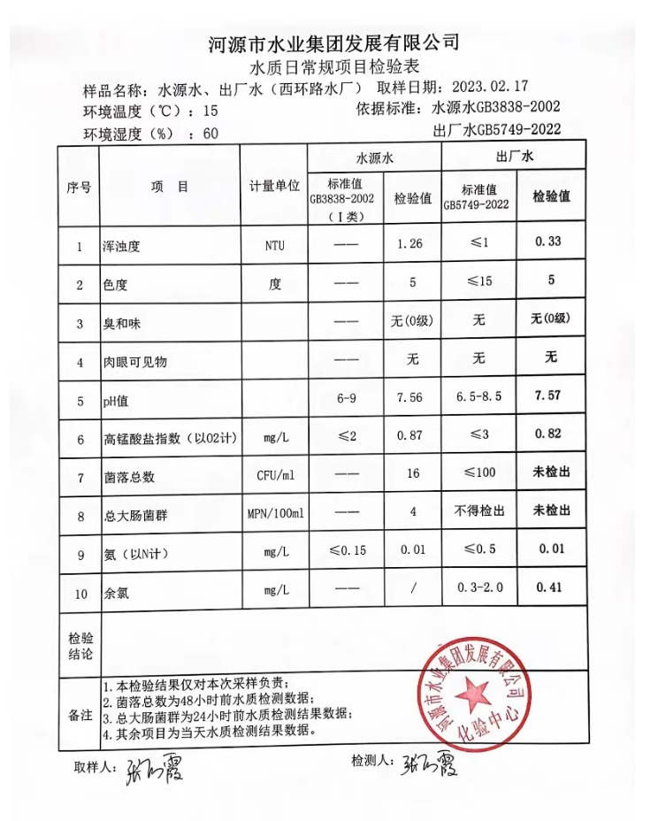 2023年2月17日水質(zhì)檢驗報告