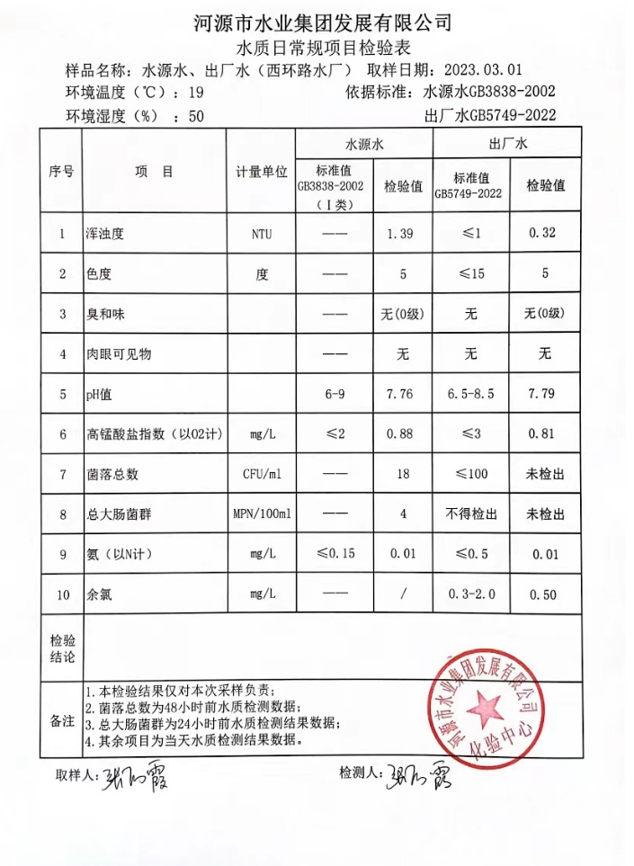 2023年3月1日水質(zhì)檢驗(yàn)報(bào)告