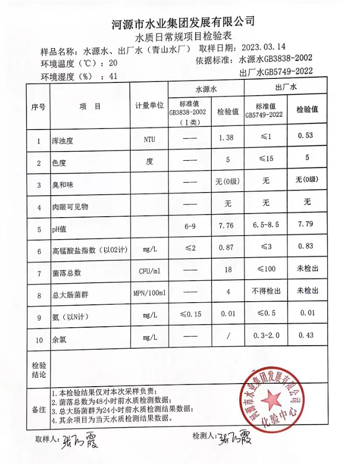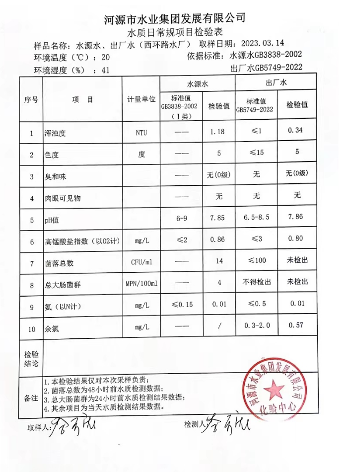 2023年3月14日水質檢驗報告