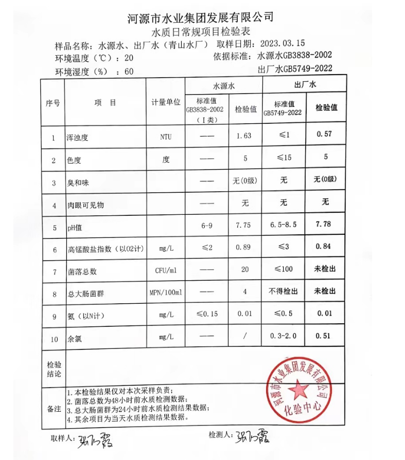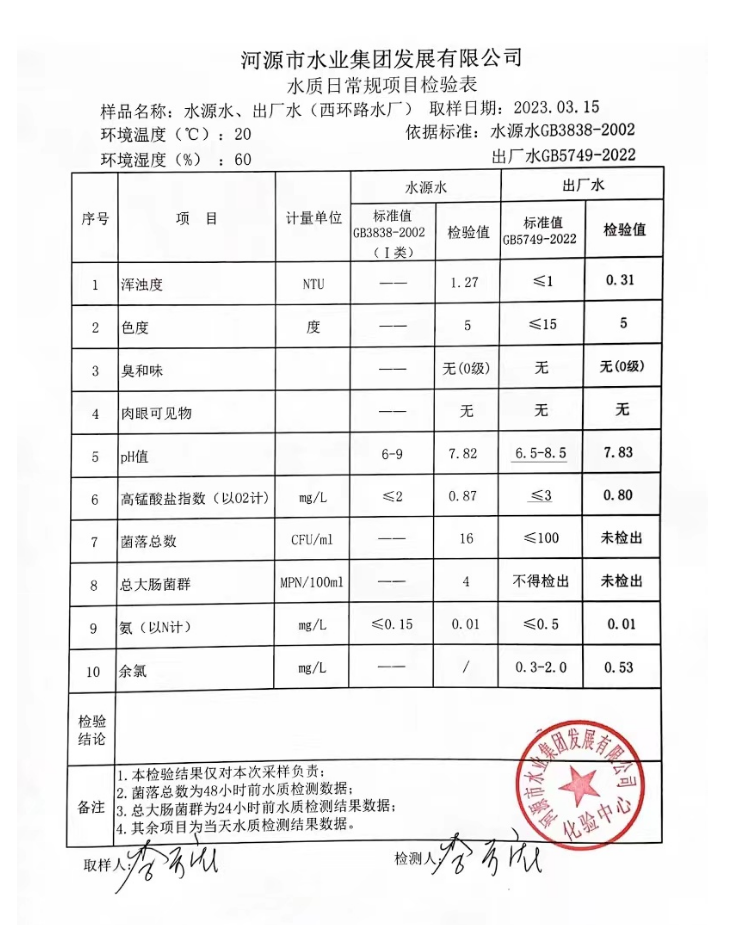 2023年3月15日水質檢驗報告