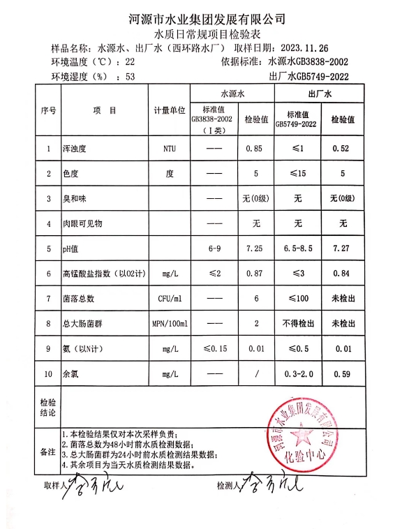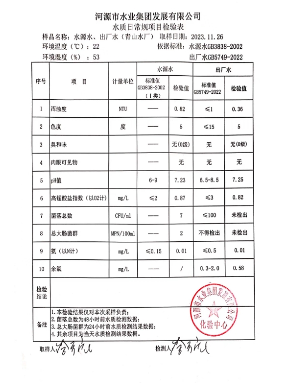 2023年11月26日水質檢驗報告 ???