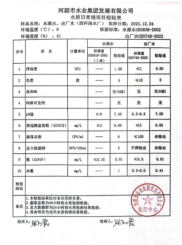 2023年12月24日水質(zhì)檢驗(yàn)報(bào)告