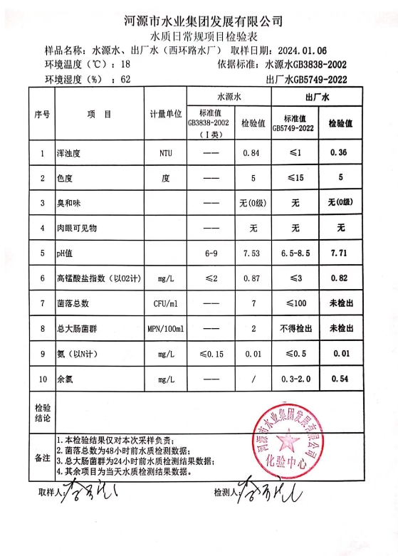 2024年1月6日水質(zhì)檢驗(yàn)報(bào)告