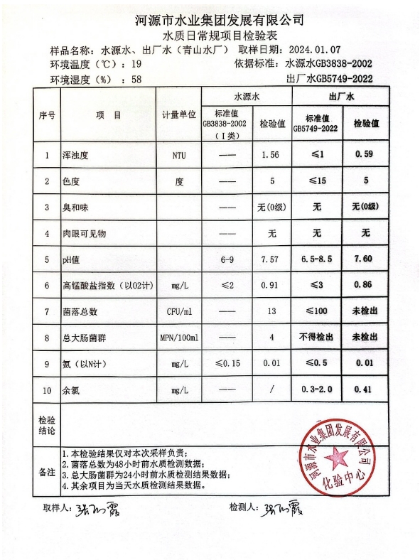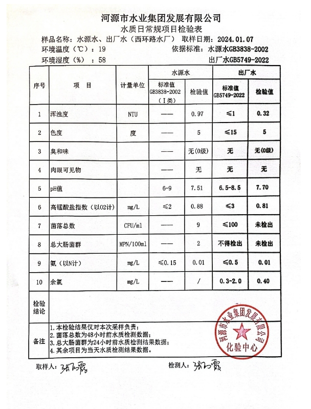 2024年1月7日水質檢驗報告
