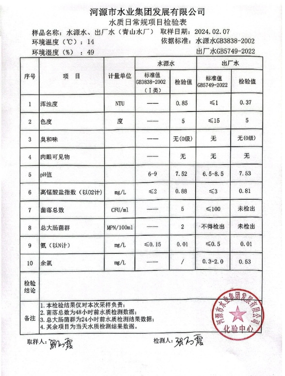 2024年2月7日水質(zhì)檢驗報告 ???