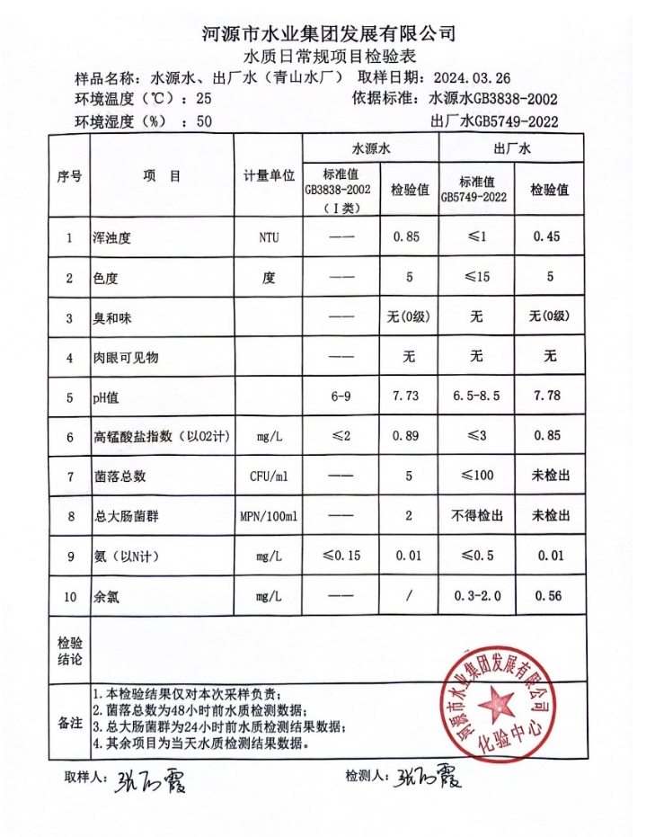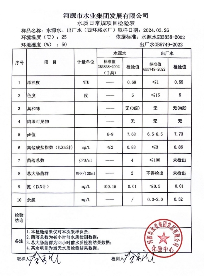 2024年3月26日水質檢驗報告