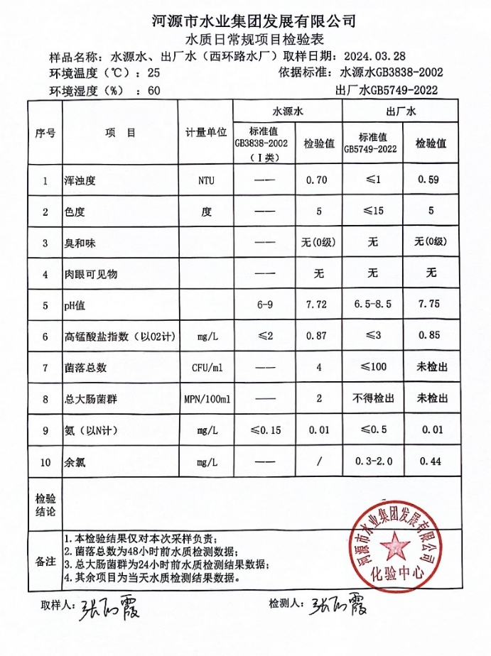 2024年3月28日水質(zhì)檢驗(yàn)報(bào)告