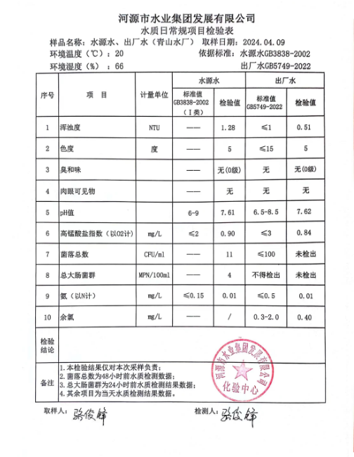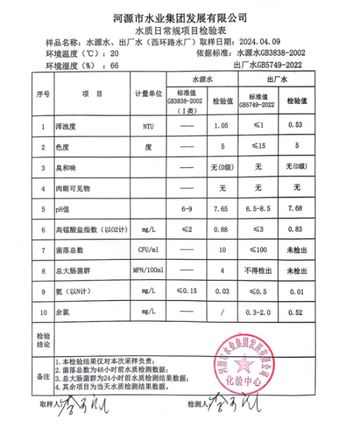 2024年4月9日水質(zhì)檢驗(yàn)報(bào)告