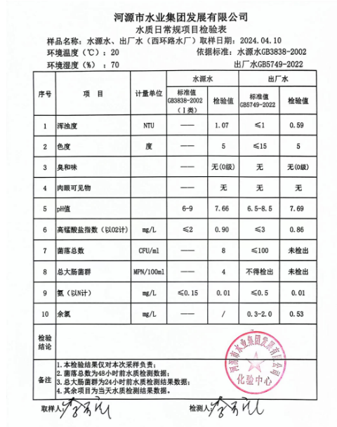 2024年4月10日水質檢驗報告