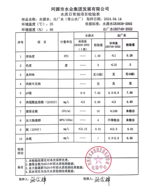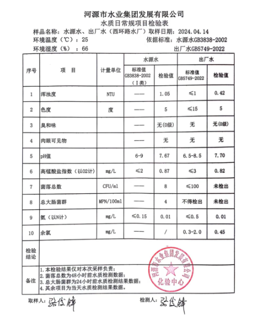 2024年4月14日水質檢驗報告